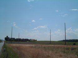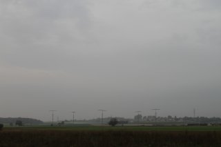 The following picture, taken in September 2013, shows the place where the HBG antenna was standing viewed from approximately the same angle as the south view below. The "forest" of log-periodic antennas is still there, but the two big towers disappeared.